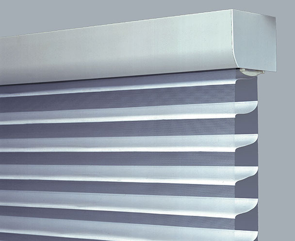 Horizontal Sheers have become one of our most popular product lines. On top of being very modern looking, they also have great flexibility when it comes to controlling how much light passes through a window. Our Horizontal Sheer Collection is manufactured in-house, and similar to the Hunter Douglas Silhouette, they come in either 2” or 3” pleats. Having a small headrail makes them perfect for those tight places where similar style blinds just won’t fit. In fact, we only need 2.25” of space to install our horizontal sheer blinds.
